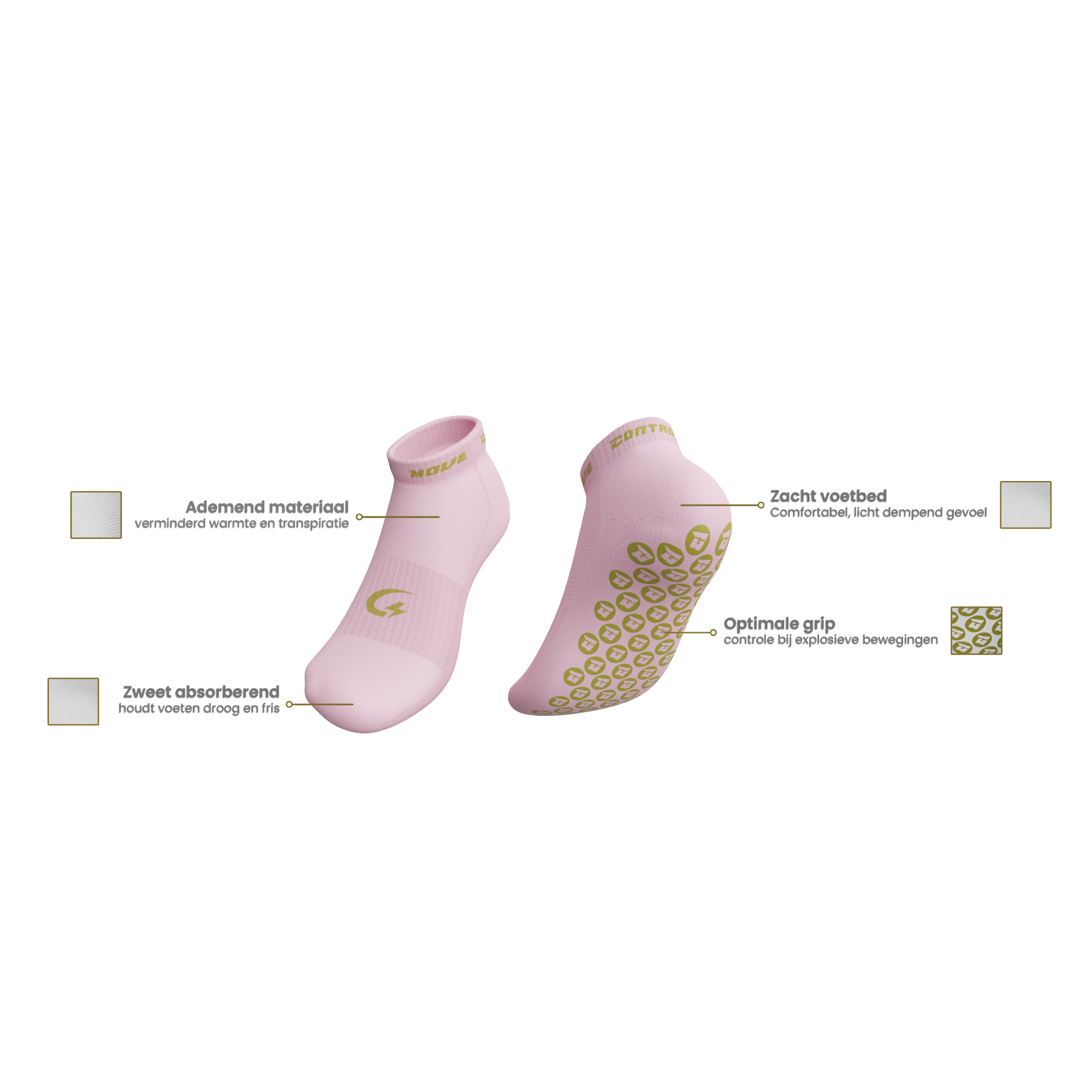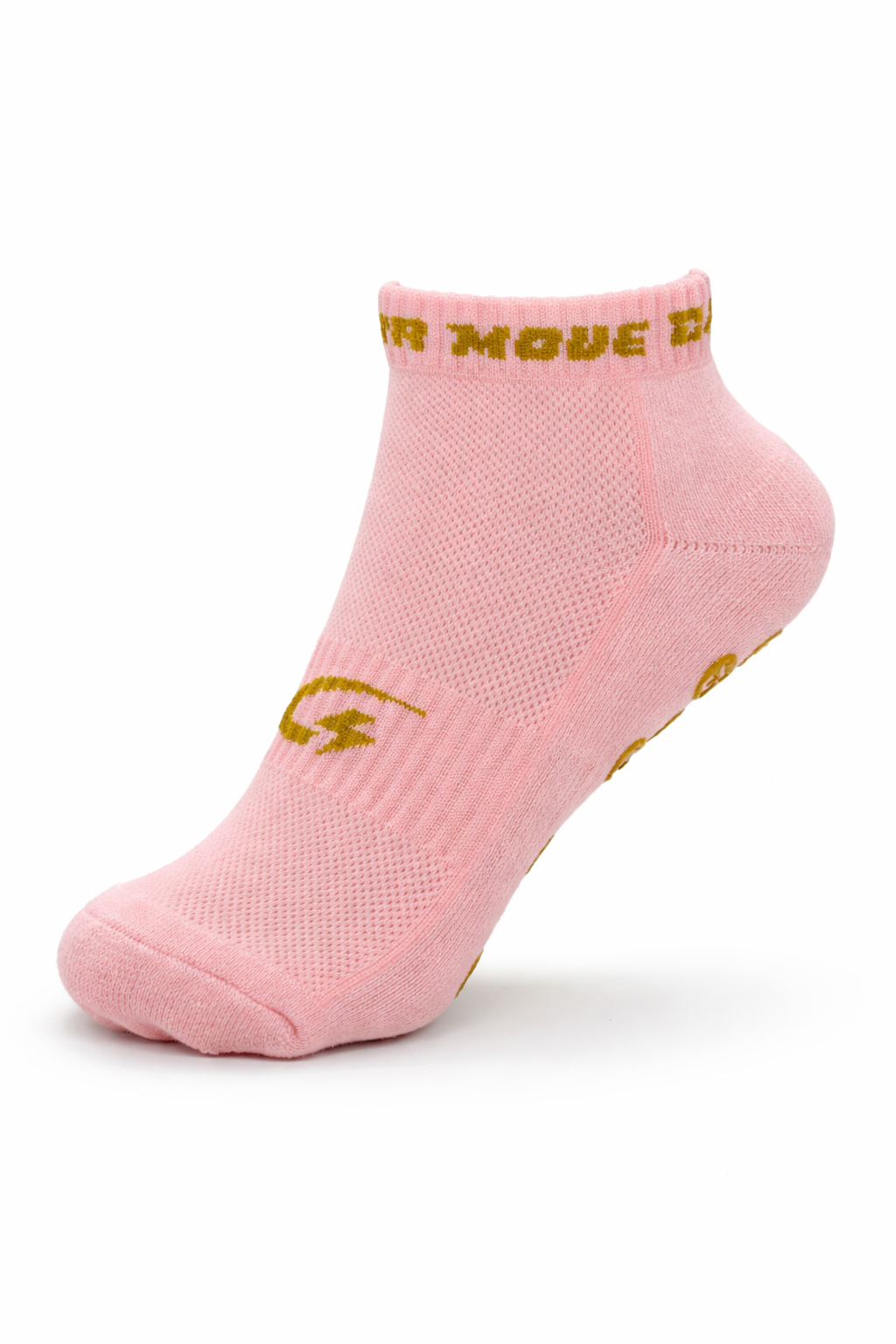The short pink grip socks feature an advanced anti-slip grip pattern on the sole. This keeps your feet firmly in place inside your shoes, even during quick movements, turns, and explosive exercises. Less slipping means more control and confidence during every workout.